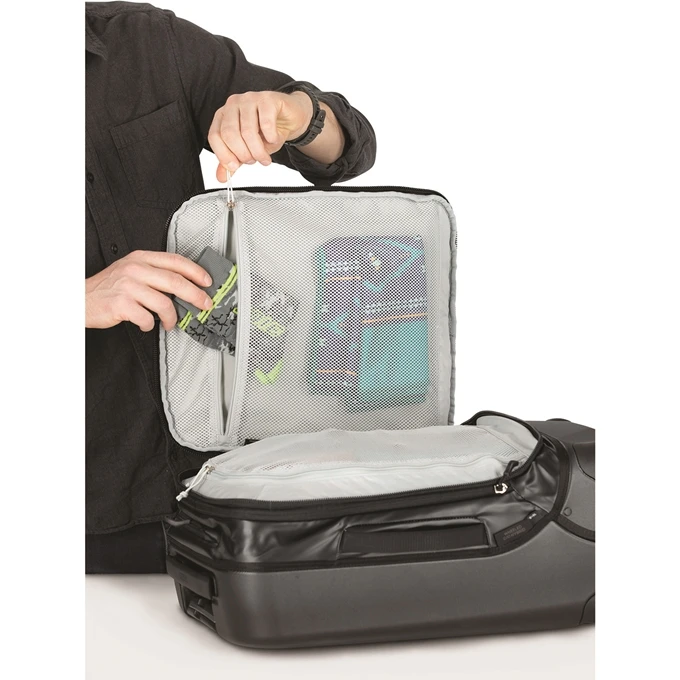 Reizen met een handbagage koffer heeft een aantal grote voordelen ten opzichte van ruimbagage. Sla de wachtrijen op het vliegveld over en ga op reis met de Osprey Transporter, de ideale handbagage koffer voor jouw volgende reis. Met deze handbagage koffer hoef je niet in te checken op het vliegveld en op de plek van bestemming sta je niet te wachten tot alle ruimbagage koffers van de bagageband rollen. Omdat deze Osprey koffer voorzien is van 4 wielen, is de koffer wendbaar en stabiel. Ten opzichte van koffers met 2 wielen is het minder zwaar om de koffer te vervoeren, omdat deze rechtop kan blijven staan.
